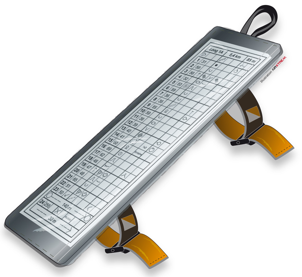 Lång definitionshållare i mjukplast med öppning på långsidan. Fästes enkelt med två resårband (snabbspännen) längs med armen. Kan även fästas runt tummen för stabilare grepp. Tumgreppet är löstagbart och kan vändas så att fickan passar på både vänster och höger arm. 73*200 mm för definition ca 60*190 mm. Vikt 44 gram.
