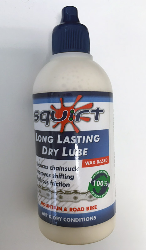 Squirt chain lube är en emulsion av ett antal olika vaxer som är blandade under speciellt kontrollerande former. Denna process ger den en unik jämn konsistens som gör det väldigt lätt att applicera. Ingen separation kommer att ske under normal förvaring och munstycket kommer inte att gegga igen.