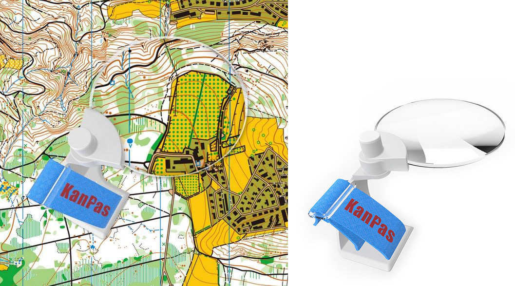 Tumlupp från Kanpas som passar för vänster hand. Kan även användas som förstoringslupp helt utan kompass med det medföljande bandet.