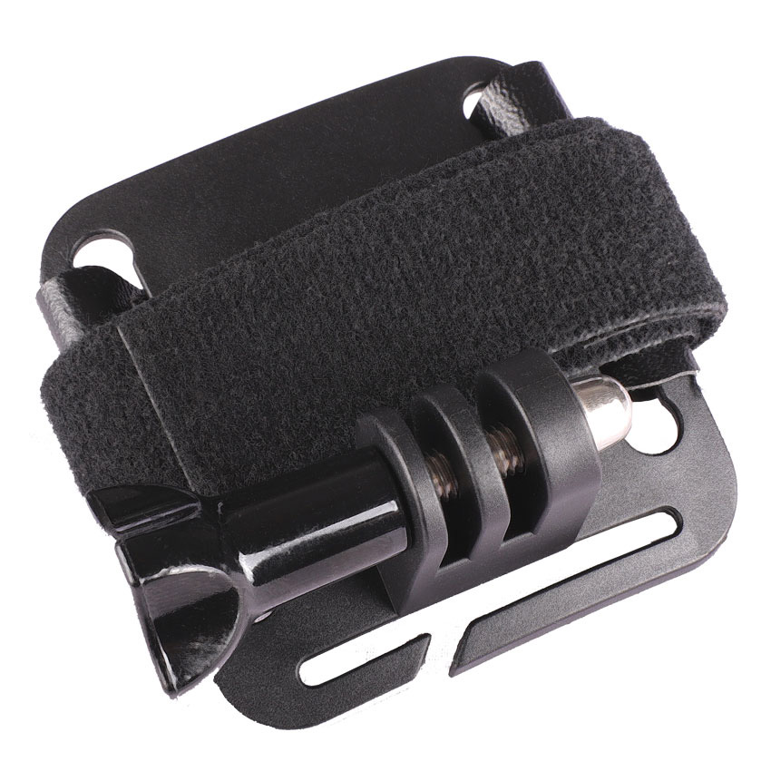 Cykelhjälmsfäste GoPro-kompatibelt. Fästens genom cykelhjälmshål med kardborre.