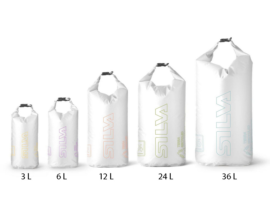 Terra Dry Bags är en uppdaterad version av Silva R-Pet serien som också var i återvunnet material men som var designade i olika färger och med fullfärgstryck. Med Terra-serien har det lagts ännu mer fokus på att minska miljöpåverkan och därför har alla infärgning och färgtryck reducerats till ett minimum. Resultatet är denna serie som har ofärgat polyestertyg med endast en utskuren logotyp som enda färgtryck.