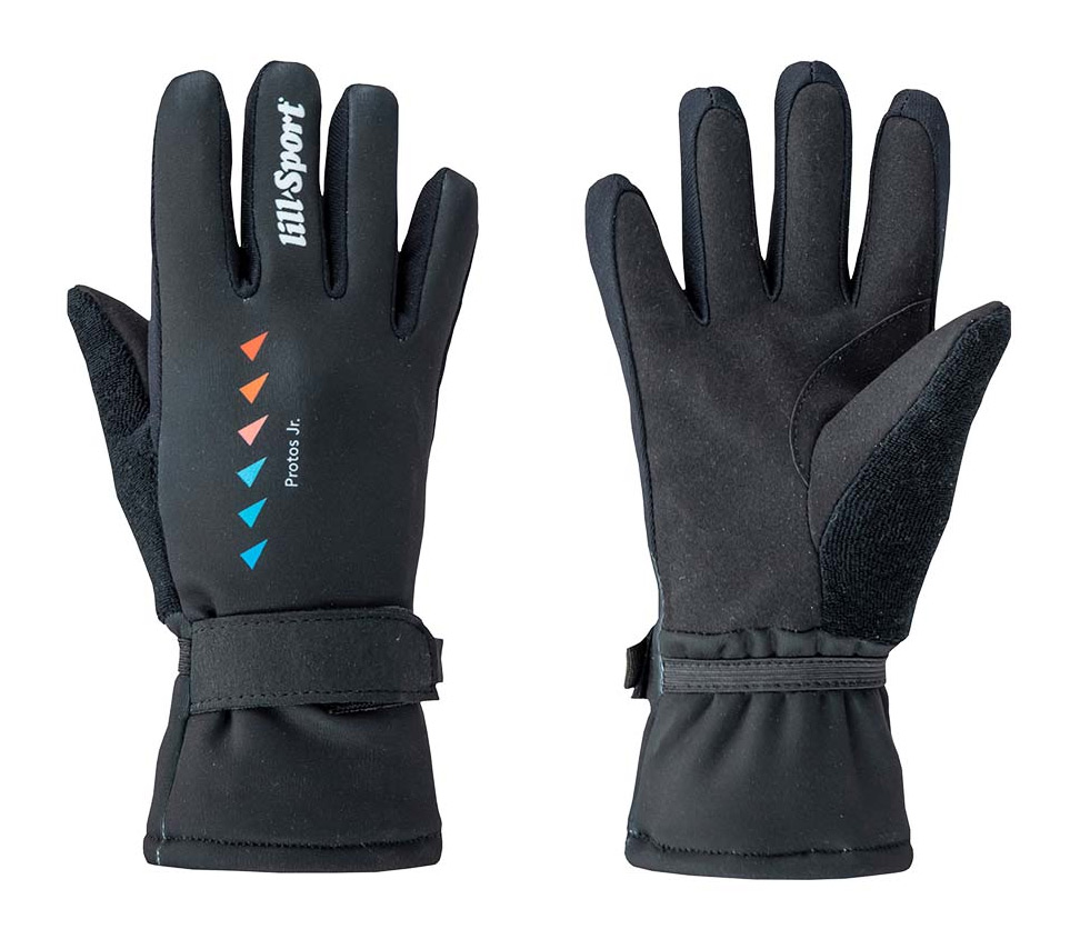 Protos Jr. är en fodrad juniorhandske med en ovansida i vindtät, 3-lagerstextil med goda andningsegenskaper. lnnerhanden består av slitstarkt syntetläder. Handsken har även ett foder i micro-fleece som gör denna handske lämplig när det är kallt ute. Speciellt utvecklad för att passa barnens mindre och bredare händer under längdskidåkning.