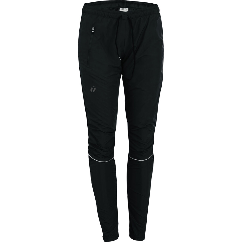 Lätta och mångsidiga träningsbyxor med vind- och vattenavvisande material på framsidan. Det elastiska materialet med andasfunktion baktill gör byxan smidig och bekväm att använda även vid mycket rörelse. Förutom det ventilerande materialet har byxorna även ventilation under knäna. Ovandelen har ett meshfoder som transporterar bort fukt och ger mer komfort vid svettningar. De här funktionerna gör även träningsbyxorna lämpliga för aktiviteter med högre intensitet, som exempelvis löpning och kortare vandringsturer. Byxorna har dragkedja på benen, elastiskt midjeband med snörning, samt en ficka med dragkedja på höger sida. Reflexdetaljer ger bättre synlighet i trafiken. Byxorna har en normal passform vilket gör att de ska sitta lösare på kroppen och inte på något sätt kännas åtsittande.
